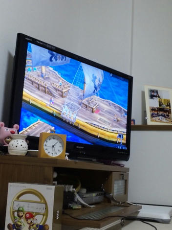 気を紛らわそうと、ご主人さまがドラクエをし始めました。プレステ2なのにこんなに画面がおっきいんですー
