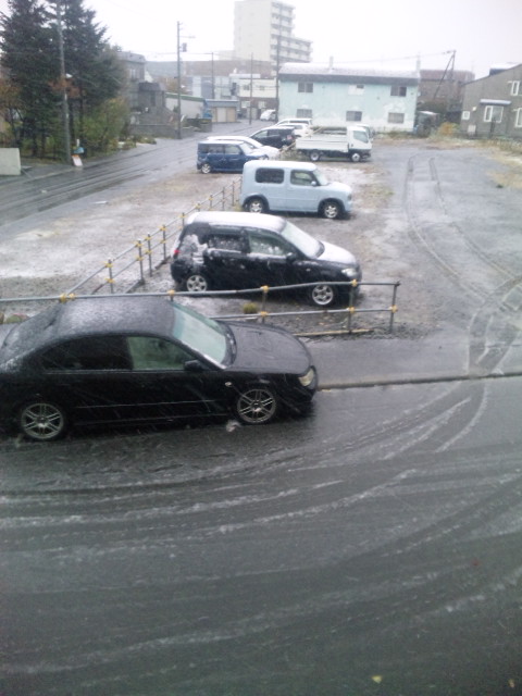 初雪で積もりやがった。夏タイヤだっていうのに…