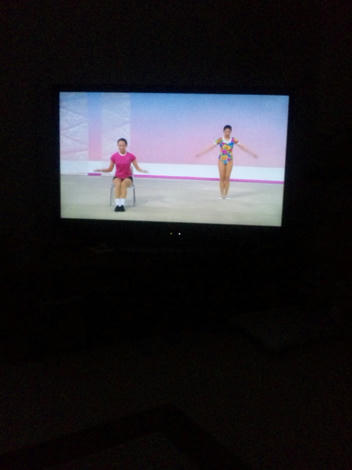 最近、ラジオ体操してるんです。今日のレオタードの柄はないなぁ…昔のスキーウェアみたい。ラジオ体操第二になると、二人から五人にお姉さんが増えるんだよ。第二は息があがるっ