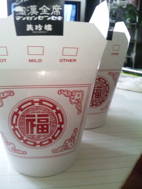 中華のテイクアウトです。満漢全席、エビチリドラゴンライス、マヨエビです。それぞれ下にはライスが…こりゃ買い過ぎました>主任そしてすごい出血と痛みですーおやすみなさい