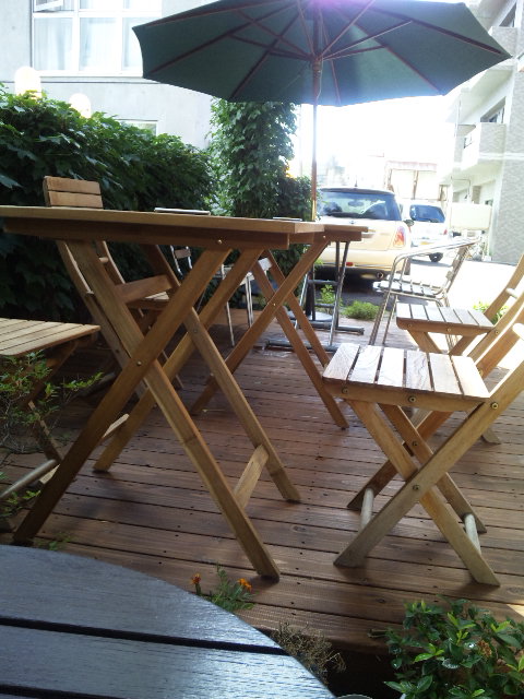 朝ごはん食べたのでおなかすきませぬ。不動産みてまわるのにまだ時間があるので珈琲タイム。あったかいから外です。
