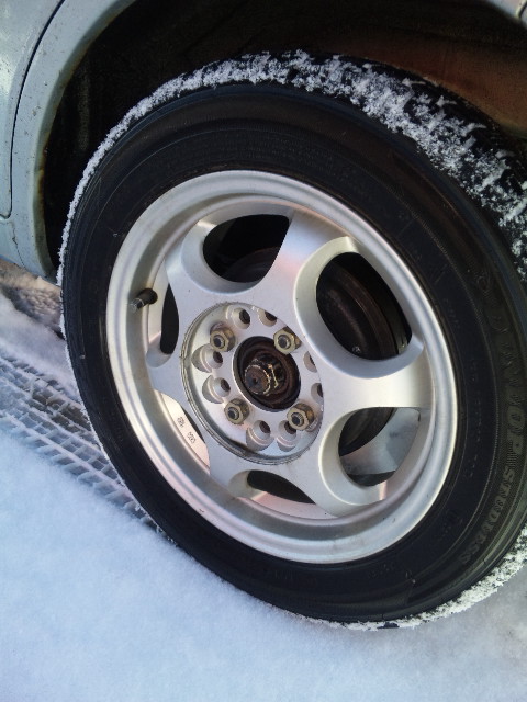 タイヤ交換したときははまっていたのにネジ隠しの真ん中のフタがいない…車庫にはないし、きっと走ってるときにふっとんだんだね…