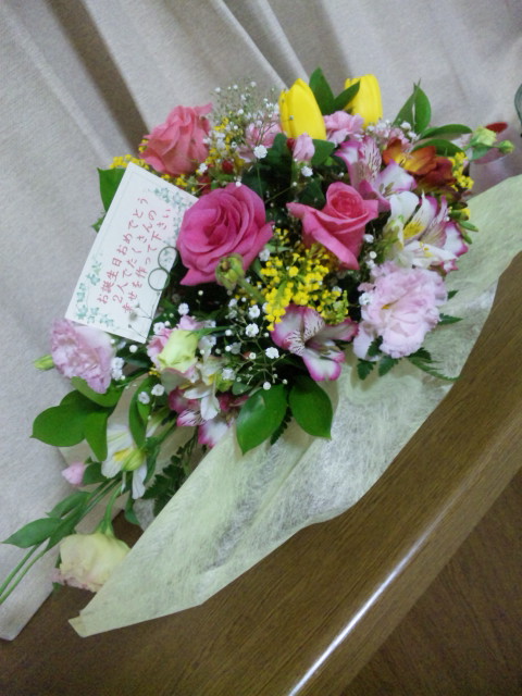 おかーさんが贈ってくれたけど、届けてくれる花屋さんが最悪むかつくおやじで微妙(+_+)キタノみたいな喋り方、もっと傲慢にした感じ。