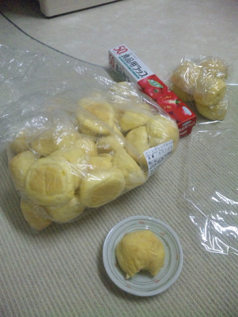 コストコでかってきてもらったコーンブレッドを、冷凍すべく分けています。かんでたら甘くておいしいんです。来年の目標コストコ会員になる