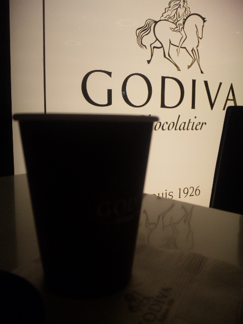 GODIVAではじめて飲み物頼みました。ミルクチョコレートヘーゼルナッツプラリネですって。とりあえず名前長い