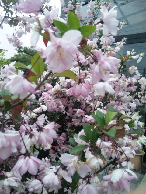 朝さむかったのに、今はあたたかい。よそのうちの庭に、綺麗な花。お名前はなんでしょねぇ。