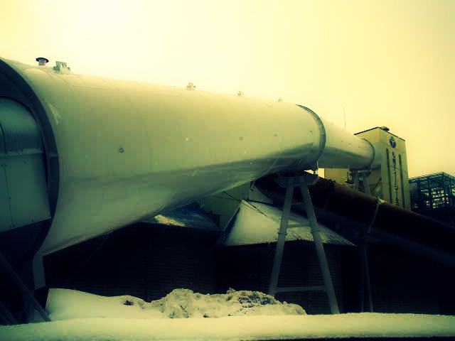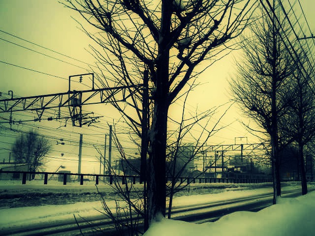 こないだ、雪の降る中、完全装備して散歩した時の写真、工場ってちょっと怖い感じする。