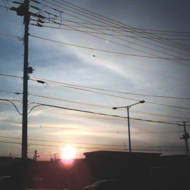 仕事の合間に玄関から撮影した夕日。