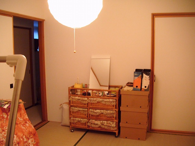 主任、私の部屋でーす和室でーすすぐに布団ひいて寝れるように一組ここにおいています。洋室はご主人さまの部屋にしているので公開できませーん。昨日の夜、二人でWiiFitしはじめました。私はストレッチしたけど、ご主人さまは腹筋が筋肉痛だそうです。毎日30分程度でもやりたいなと思っています。マリオカートの誘惑に負けないか心配でーす。